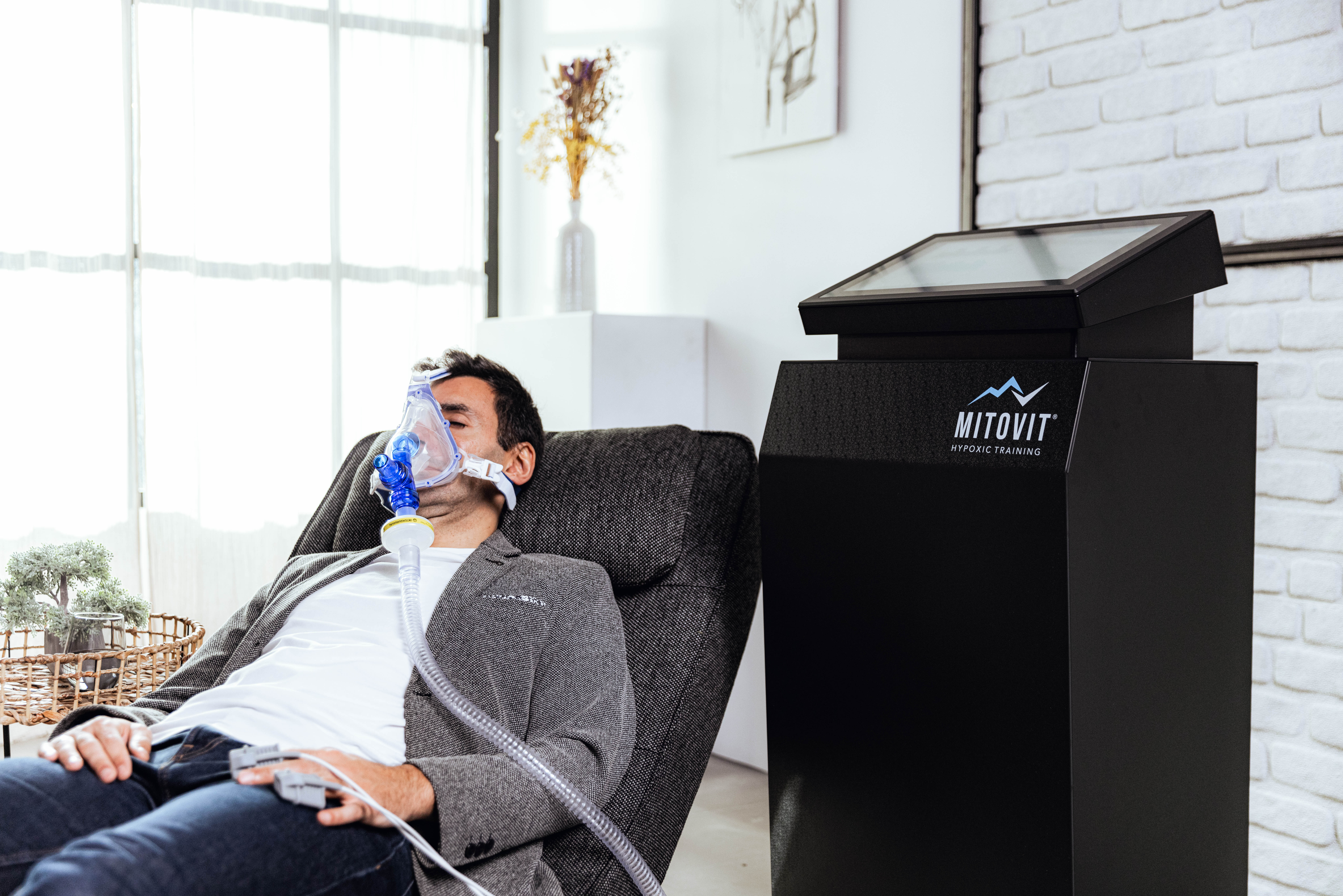 Das Mitovit®-Hypoxietraining ist ein modernes, medizinisch fundiertes Verfahren zur Aktivierung von Zellstoffwechsel und Regenerationsprozessen. Dabei atmet der Patient im Wechsel sauerstoffarme (hypoxische) und sauerstoffreiche Luft über eine Maske ein – ein Reiz, der die Mitochondrien (Zellkraftwerke) stimuliert und die körpereigene Energieproduktion anregt.